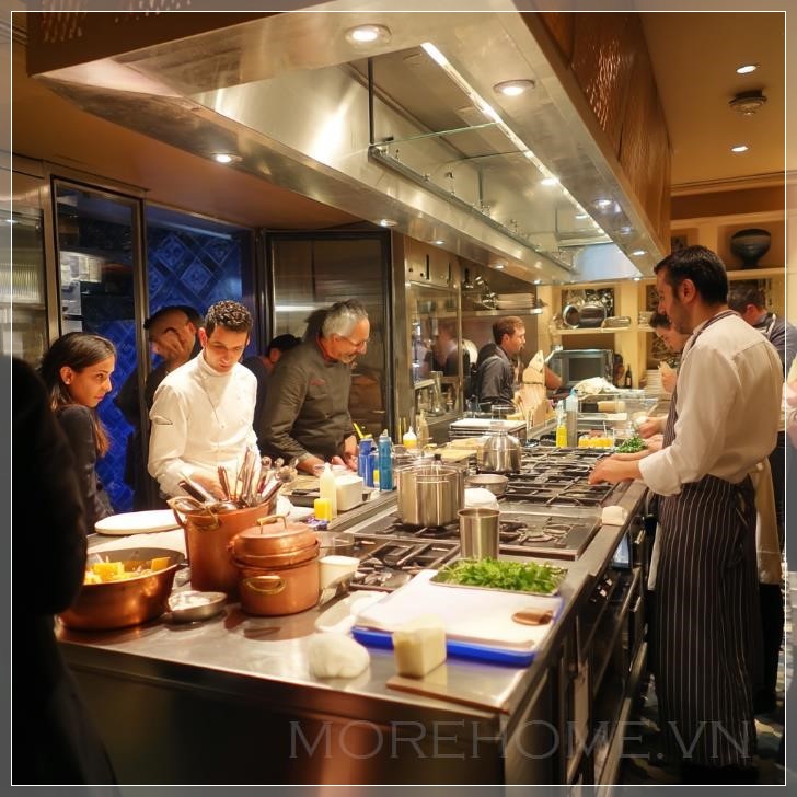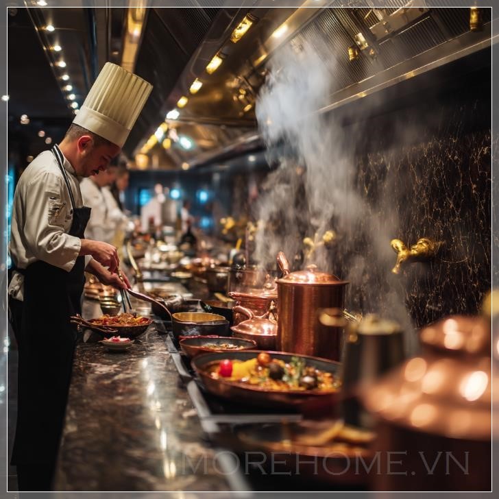 Sự kết hợp giữa sự bận rộn và tinh tế trong một nhà bếp Pháp cao cấp là minh chứng cho cách mà nghệ thuật ẩm thực có thể được thể hiện ngay trong quá trình làm việc. Đó là một cuộc hội tụ giữa kỹ thuật nấu ăn, sự sáng tạo và nghệ thuật tổ chức không gian, mang lại một trải nghiệm hoàn hảo cho mọi thực khách. Bằng cách đó, không gian bếp không chỉ là nơi chế biến món ăn mà còn là một phần không thể thiếu trong việc xây dựng hình ảnh sang trọng và đẳng cấp của nhà hàng.