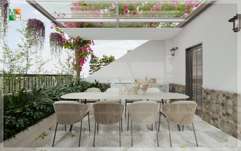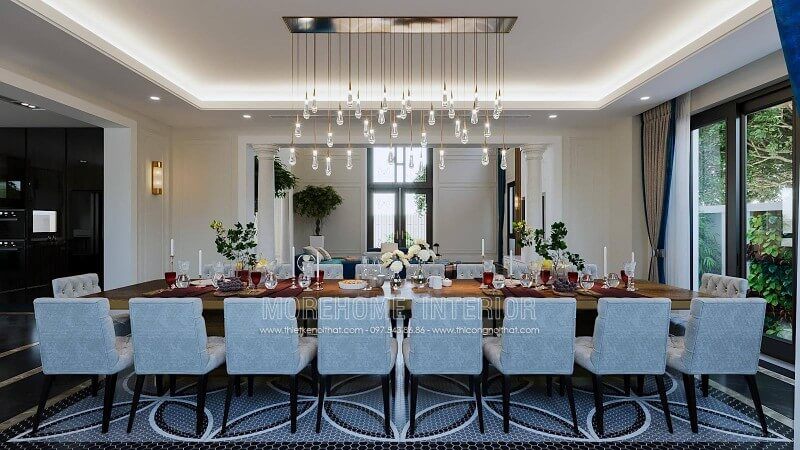 Bàn ăn biệt thự hiện đại có kiểu dáng đẹp.